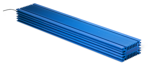 Short-circuit proof wirewound flat resistor in blue anodized aluminium enclosure. Version with 2 PTFE-wires, 600 V, AWG 14/19 (2,1 mm²), 0,5 m long. - Version with degree of protection IP 54: Type series KWAD.. (standard version) - Version with degree of protection IP 67: Type series KYAD..