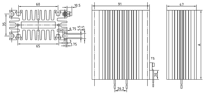 Short-circuit proof wirewound flat resistor in blue anodized aluminium enclosure. Version with 2 PTFE-wires, 600 V, AWG 14/19 (2,1 mm²), 0,5 m long. - Version with degree of protection IP 54: Type series KWAD.. (standard version) - Version with degree of protection IP 67: Type series KYAD..