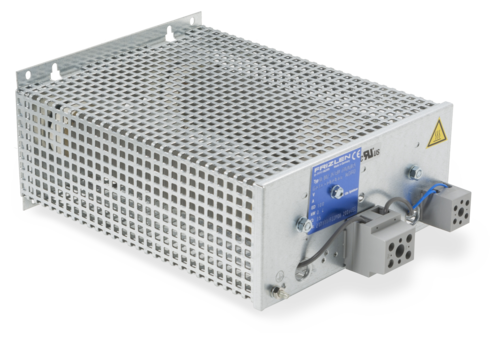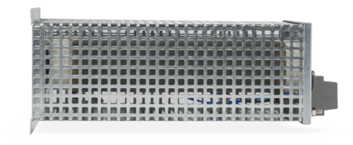 Cemented wirewound tubular fixed resistor in one-tube design, degree of protection IP20, in perforated steel sheet enclosure, mounting vertical to mounting surface, connections optionally at terminals or at screw or fast-on clips at the resistor. For integration into switch cabinets.