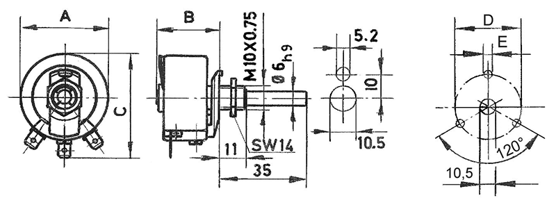 Zementierter Drahtdrehwiderstand, in Schutzart IP00, zum Einbau, Anschluss an Steckkontakten