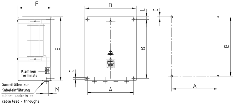 - Ausführung in Schutzart IP 00, Baureihe FKL 16.. bis FKL 20.. . Die Maße sind identisch mit FAL ..