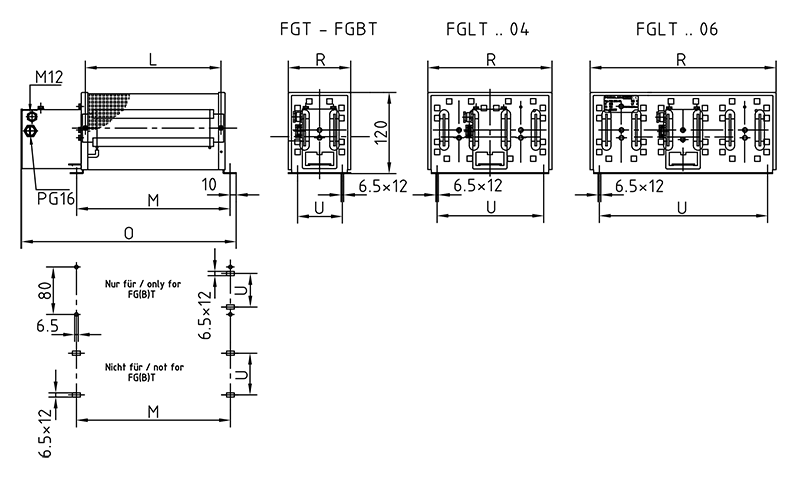 Bei Strömen kleiner als 13 A Maßbild 15m0118_FGT-FGLT_17A.pdf beachten (Maß O ist in diesem Fall 33 mm kleiner)