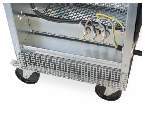 Stahlgitterwiderstandsgeräte in Schutzart IP 23, mit Wetterschutzdach im verzinkten rundum verschlossenen Stahlblechgehäuse mit Schutzgitter unten und oben. Keramikisolierte Flach- oder Bolzenklemmen von 35 A bis 87 A bei variablem Einbau für Stern- und Dreieckschaltung sind möglich.