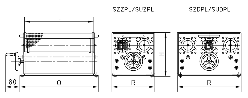 SZ.PL .. Zementierte Zweirohr (SZZPL..) - bzw. Dreirohr (SZDPL..) - Schiebewiderstände mit Spindelantrieb (Standardausführung) SU.PL .. Unzementierte Zweirohr (SUZPL..) - bzw. Dreirohr (SUDPL..) - Schiebewiderstände mit Spindelantrieb (Sonderausführung) - in Laborausführung - Gehäuse mit aluminiumfarbener Hammerschlaglackierung und Gummifüßen - Schutzart IP20.