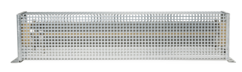 Zementierter drahtgewickelter Rohrfestwiderstand in Ein- Zwei- bzw. Dreirohrausführung, in Schutzart IP20 bei Montage auf einer geeigneten Oberfläche, mit Seitenteilen und perforierter Abdeckung, Befestigung parallel zur Montagefläche, Anschlüsse an Schraubschellen am Widerstandsrohr.