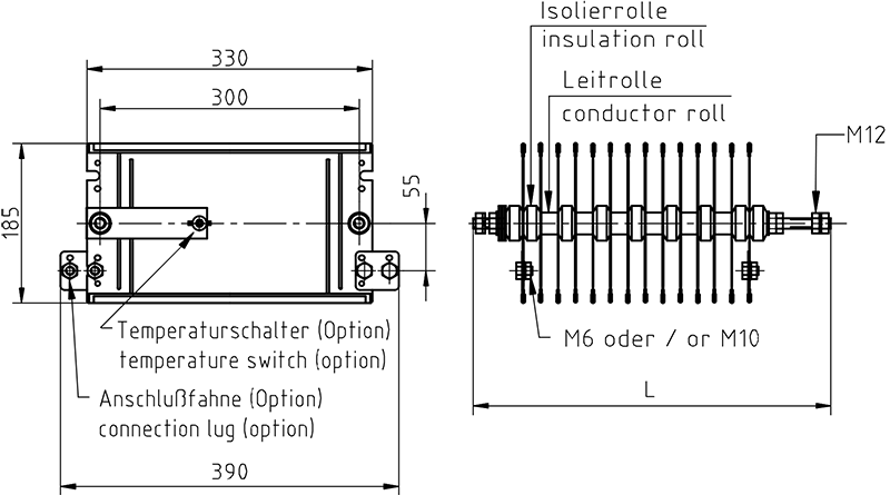 Stahlgitterfestwiderstandsblock in Schutzart IP 00 zum Einbau in Schaltschränke, Geräte oder Lüftungskanäle. Anschluss am Widerstand.