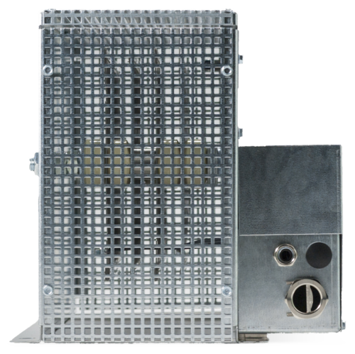 Stahlgitterfestwiderstandsgerät in Schutzart IP20 bei Montage auf einer geeigneten Oberfläche, im verzinkten Stahlblechgehäuse mit max. 2 Klemmen verschiedener Art für den Widerstand im angebauten Klemmenkasten; Temperaturschalter ist möglichBesondere Merkmale