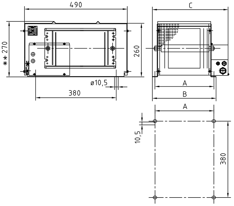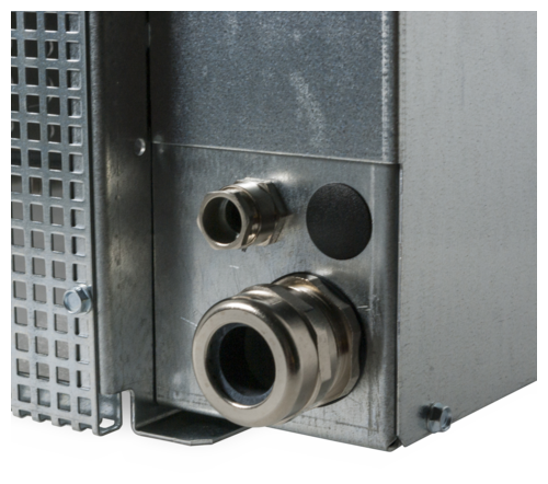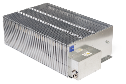 Stahlgitterfestwiderstandsgerät in Schutzart IP20 bei Montage auf einer geeigneten Oberfläche, im verzinkten Stahlblechgehäuse mit max. 2 Klemmen verschiedener Art für den Widerstand im angebauten Klemmenkasten; Temperaturschalter ist möglich