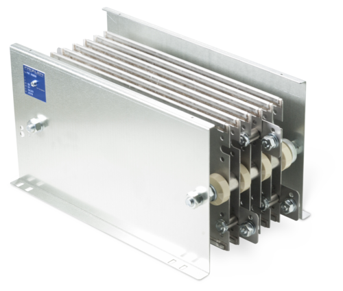 Stahlgitterfestwiderstandsgerät in Schutzart IP 00 mit Seitenteilen zum Einbau in den Schaltschrank. Anschluss am Widerstand.