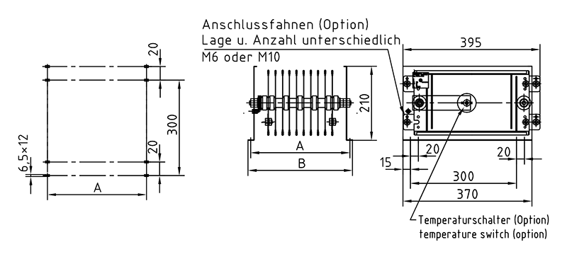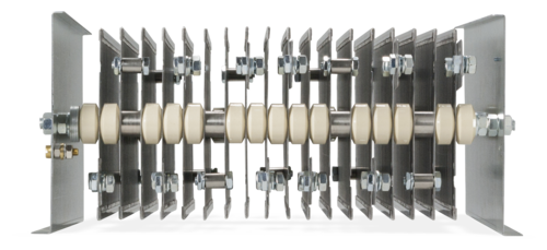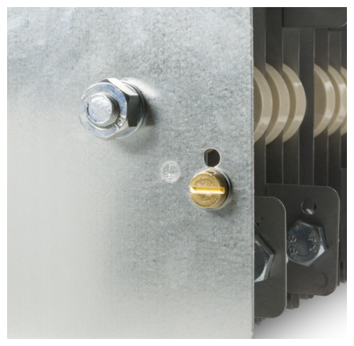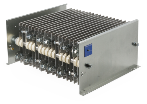 Stahlgitterfestwiderstandsgerät in Schutzart IP 00 mit Seitenteilen zum Einbau in den Schaltschrank. Anschluss am Widerstand.